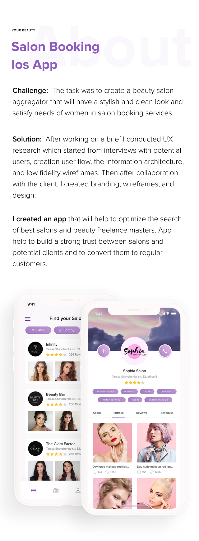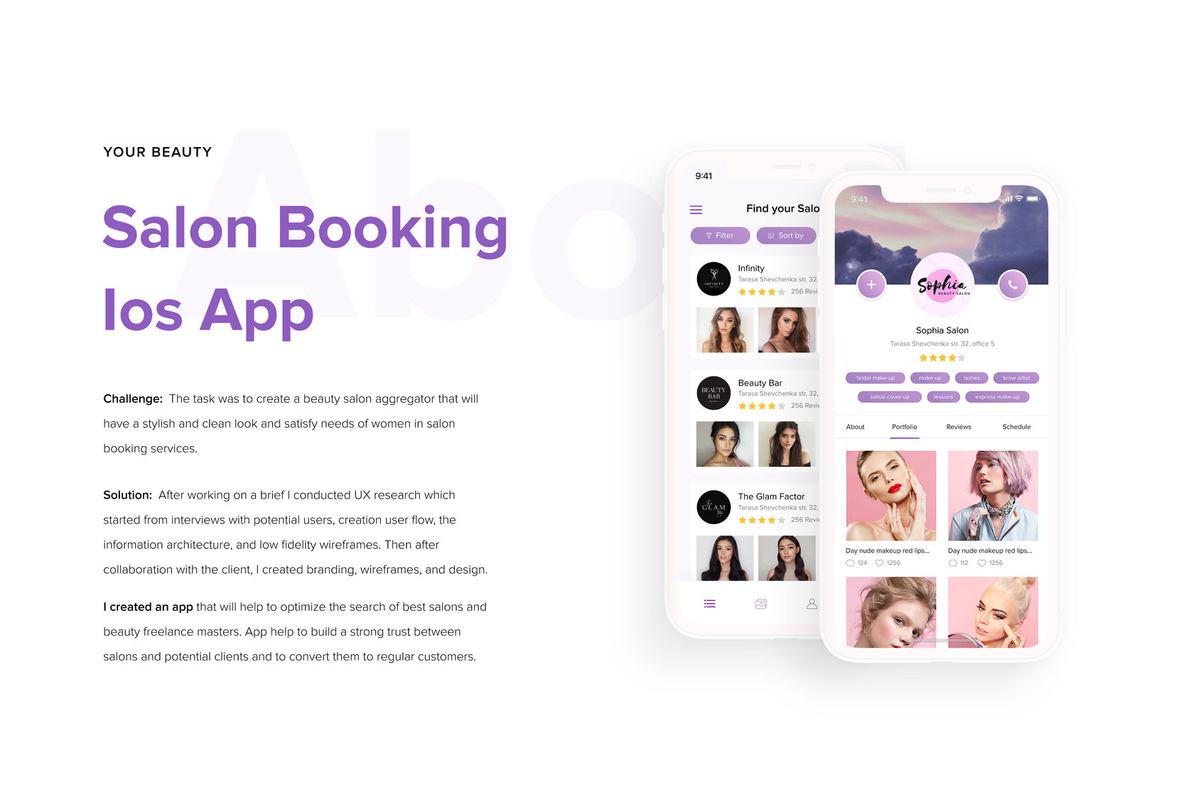 Beauty booking salon aggregator UI/UX design that helps to build strong good relationship between clients, beauty salons and freelance masters.